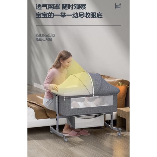 ➡️多功能設計:秒變搖床,多功能的使用方便看顧,各種場合一床搞定。